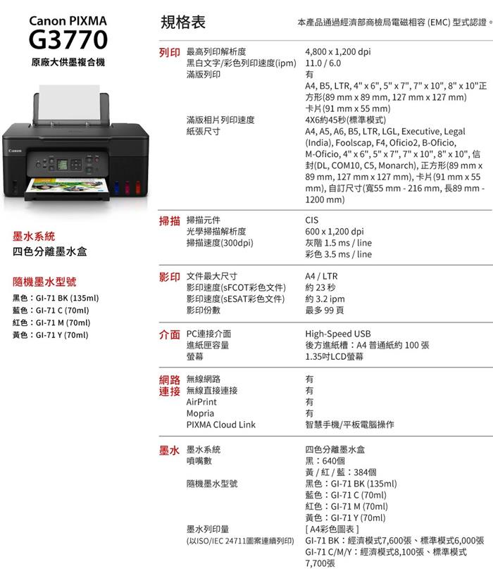 Canon PIXMA G3770 原廠大供墨複合機_黑(BK)