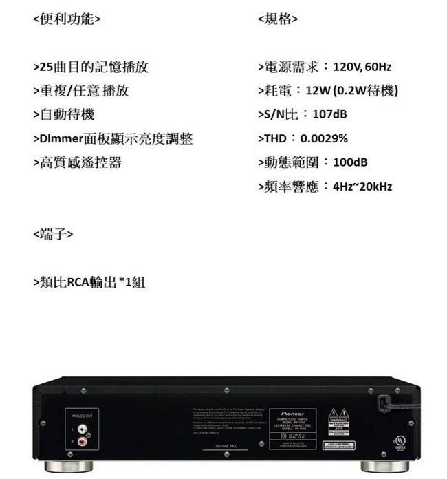 【Pioneer先鋒】 低噪音純音樂CD播放器 PD-10AE