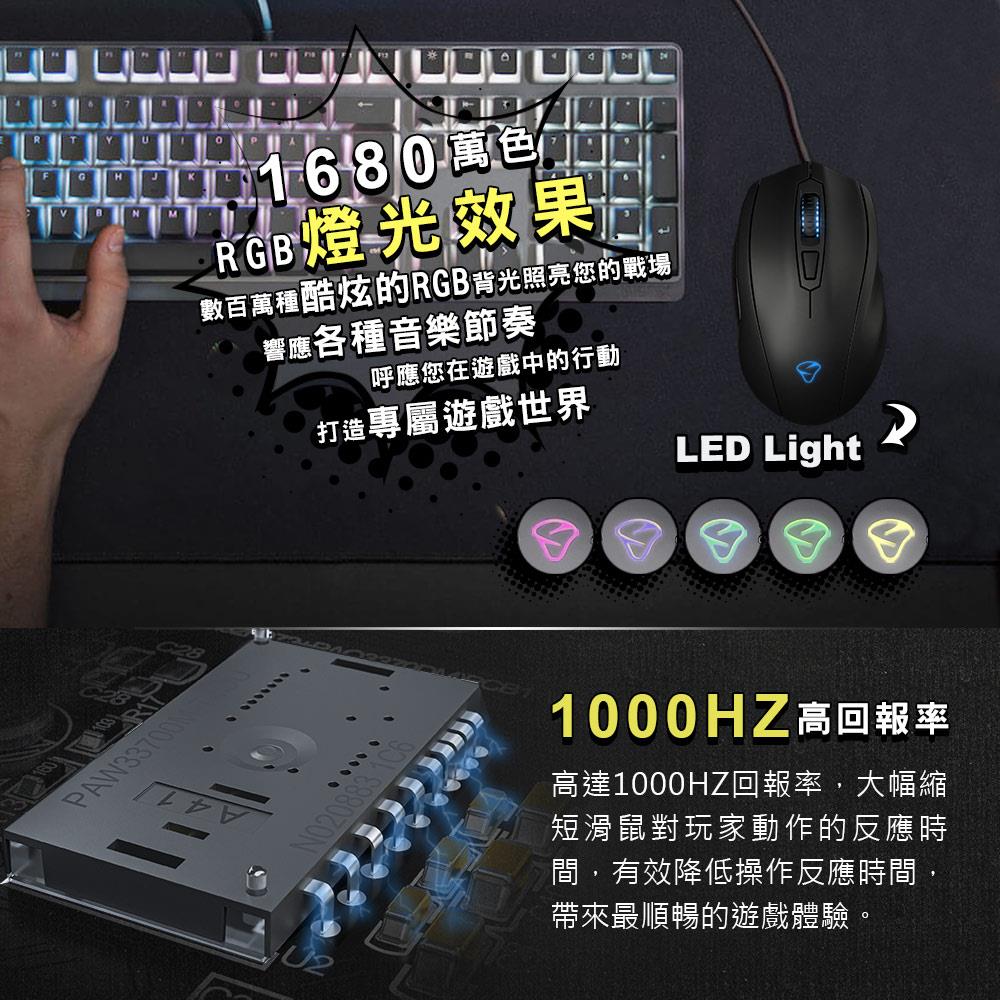 高達1000HZ回報率,大幅縮短滑鼠對玩家動作的反應時間,有效降低操作反應時間,帶來最順暢的遊戲體驗。