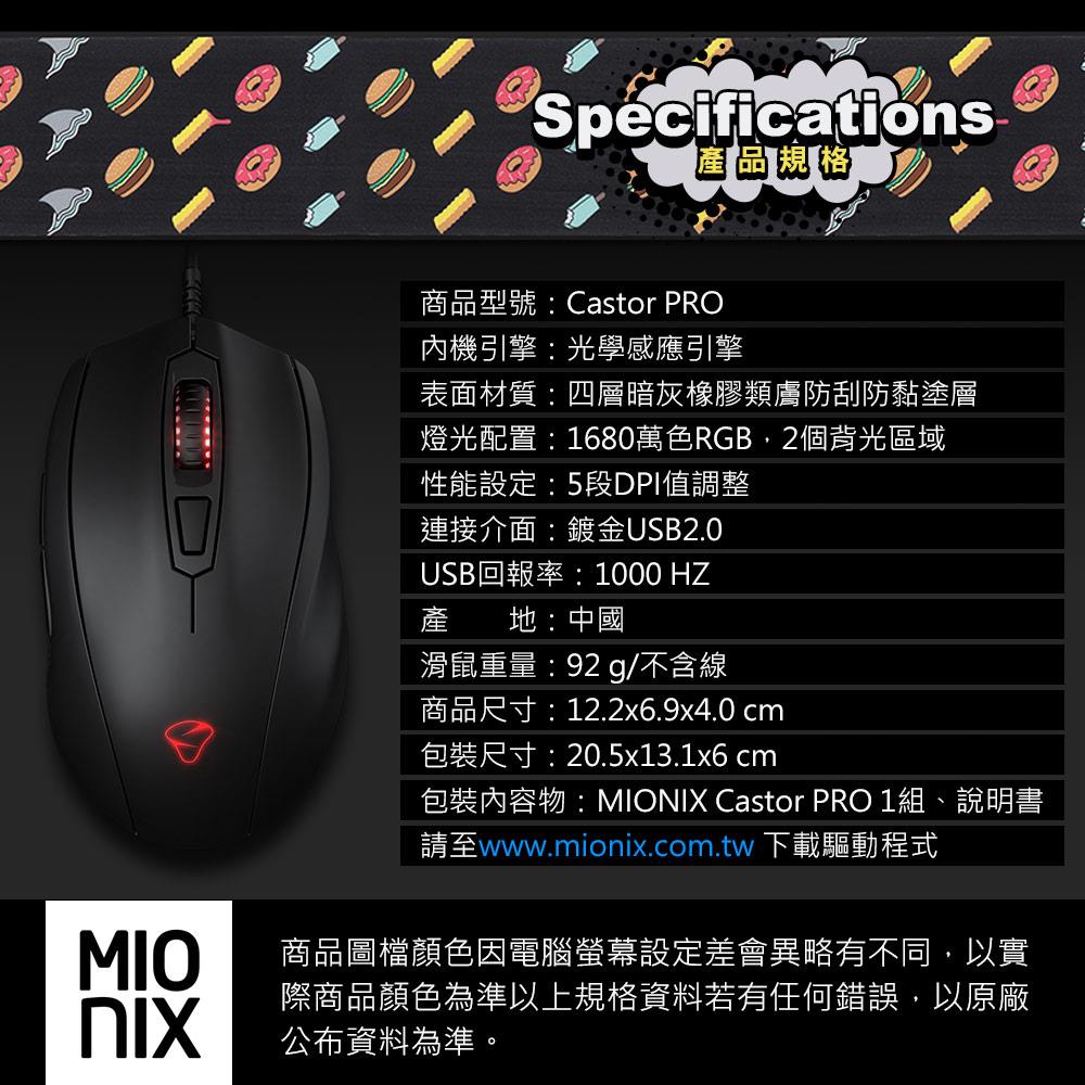 包裝內容物:MIONIX Castor PRO 1組、說明書