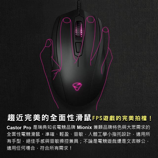 Castor Pro是瑞典知名電競品牌Mionix兼顧品牌特色與大眾需求的全面性電競滑鼠。準確、輕盈、靈敏,人體工學小指托設計,適用所有手型,絕佳手感與靈敏操控兼具;不論是電競遊戲還是文書辦公,適用任何場合,符合所有需求!
