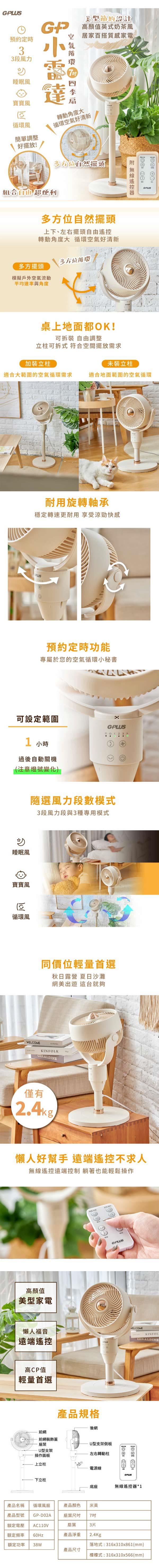 GPLUS GP-D02A 小雷達 7吋空氣循環扇※內附遙控器※