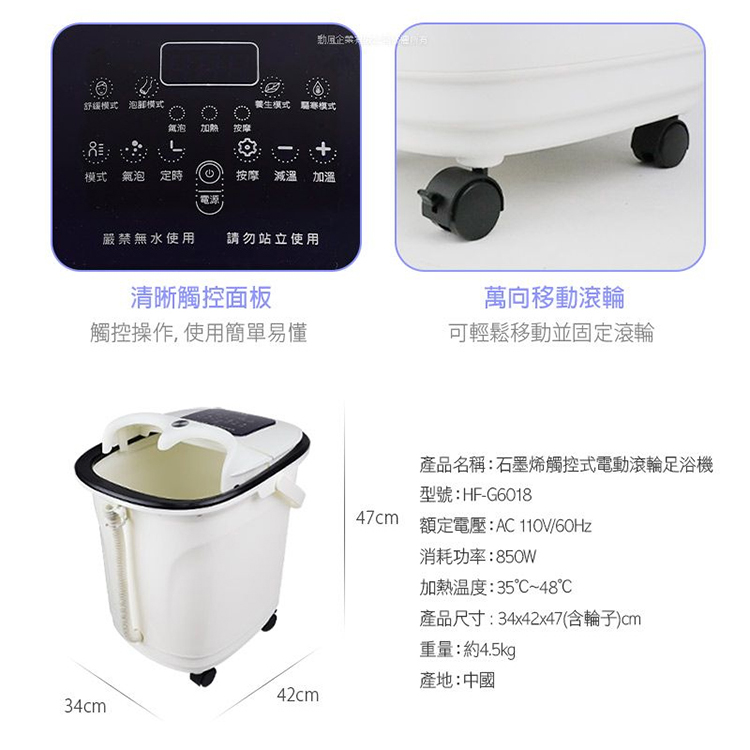 【SUPA FINE 勳風】石墨烯觸控電動滾輪按摩足浴機(HF-G6018)