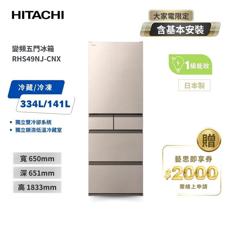 【HITACHI 日立】475L一級能效日製變頻五門冰箱 星燦金 (RHS49NJ-CNX)