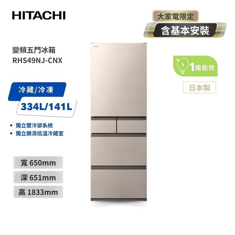 【HITACHI 日立】475L一級能效日製變頻五門冰箱 星燦金 (RHS49NJ-CNX)