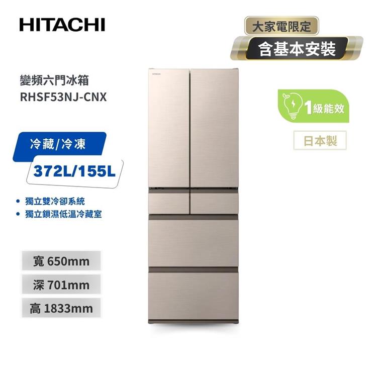 【HITACHI 日立】527L一級能效日製變頻六門冰箱 星燦金 (RHSF53NJ-CNX)