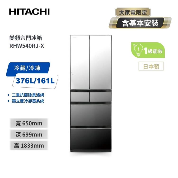 【HITACHI 日立】537L一級能效日製變頻六門冰箱 琉璃鏡 (RHW540RJ-X)