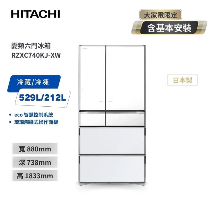 【HITACHI 日立】741L 日本原裝智能遠端遙控六門冰箱 琉璃白 (RZXC740KJ-XW)