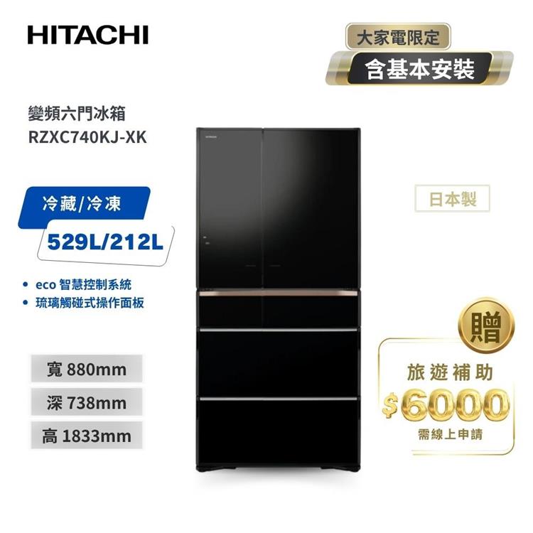 【HITACHI 日立】741L 日本原裝智能遠端遙控六門冰箱 琉璃黑 (RRZXC740KJ-XK)