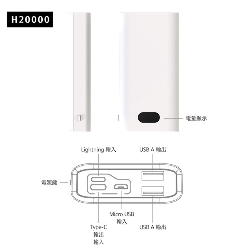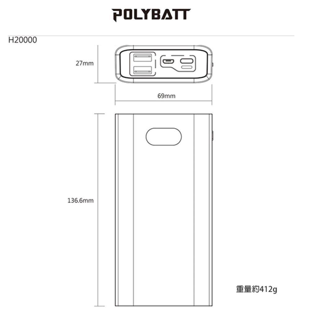 POLYBATT LED數字顯示20000行動電源PD+QC3.0/22W(H20000)