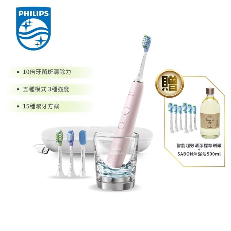【Philips 飛利浦】Sonicare 鑽白極淨智能鑽石音波震動牙刷/電動牙刷-典雅粉(HX9924/22)