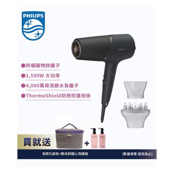 【Philips 飛利浦】智能護髮礦物負離子吹風機-霧黑金(BHD538/21)