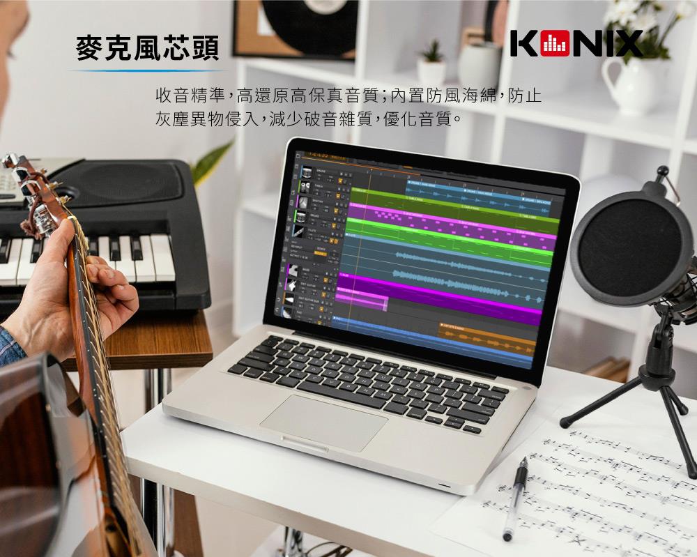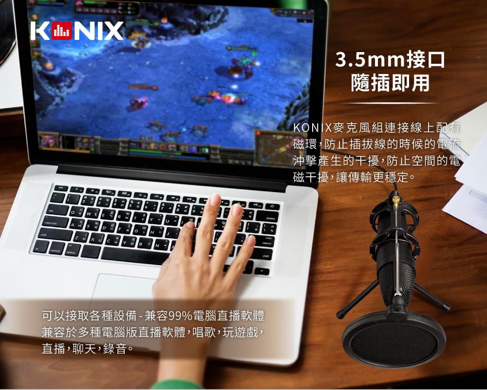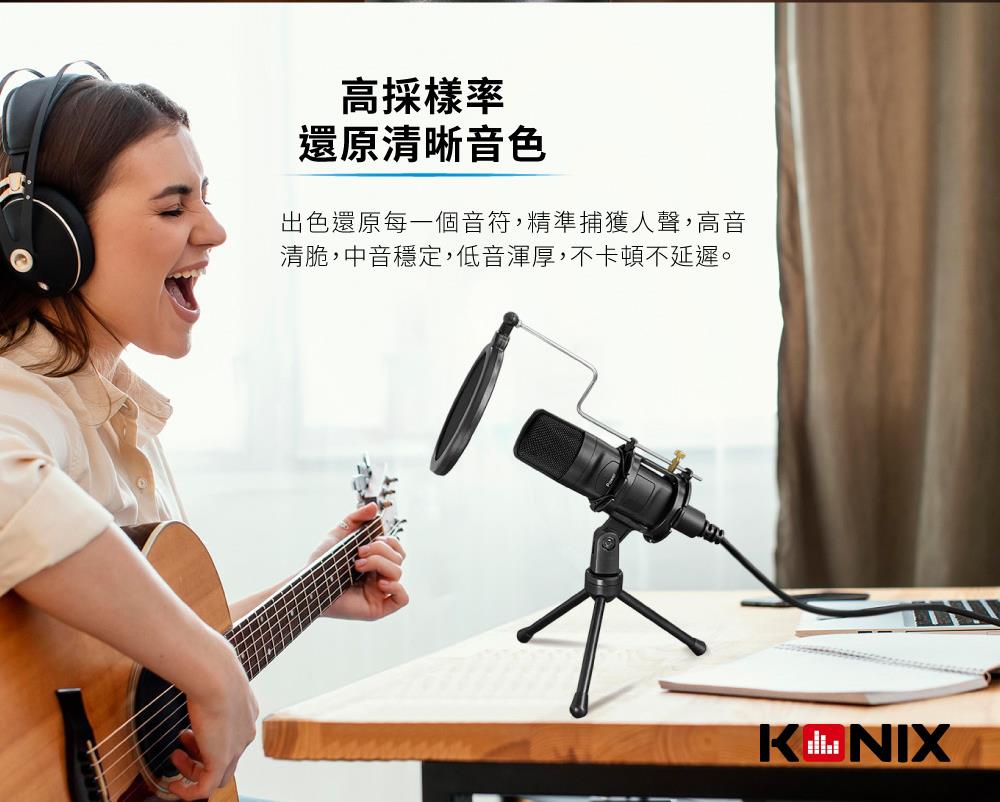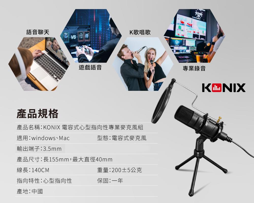 【KONIX】3.5mm接口 電容式心型指向性專業麥克風組