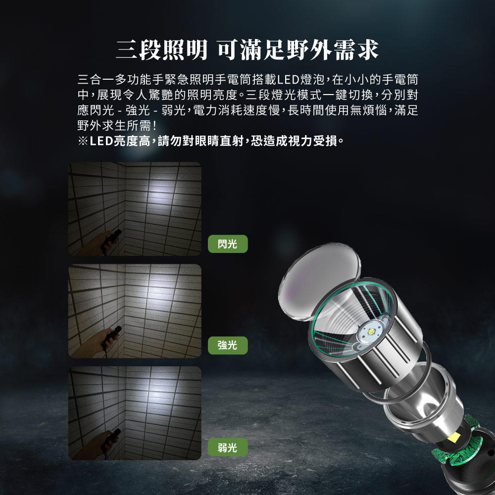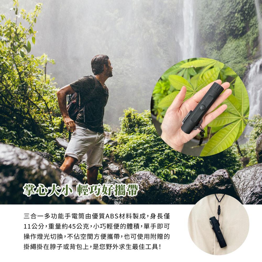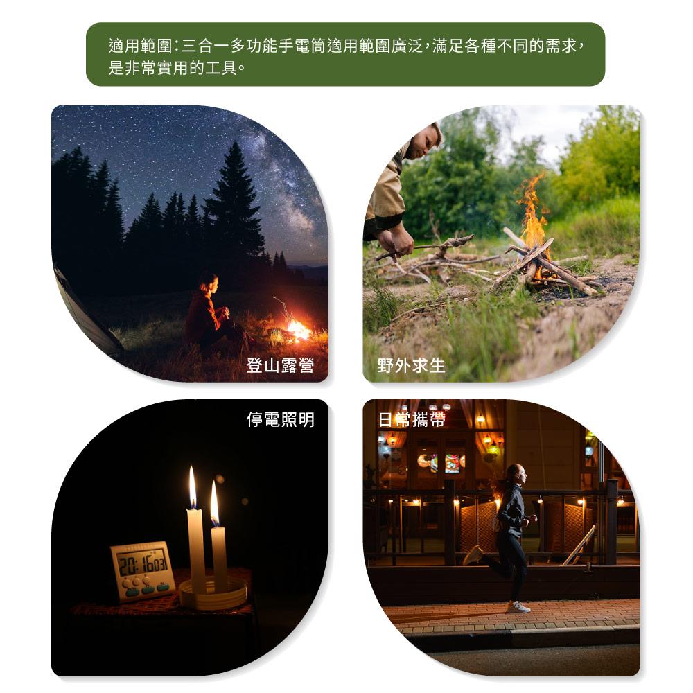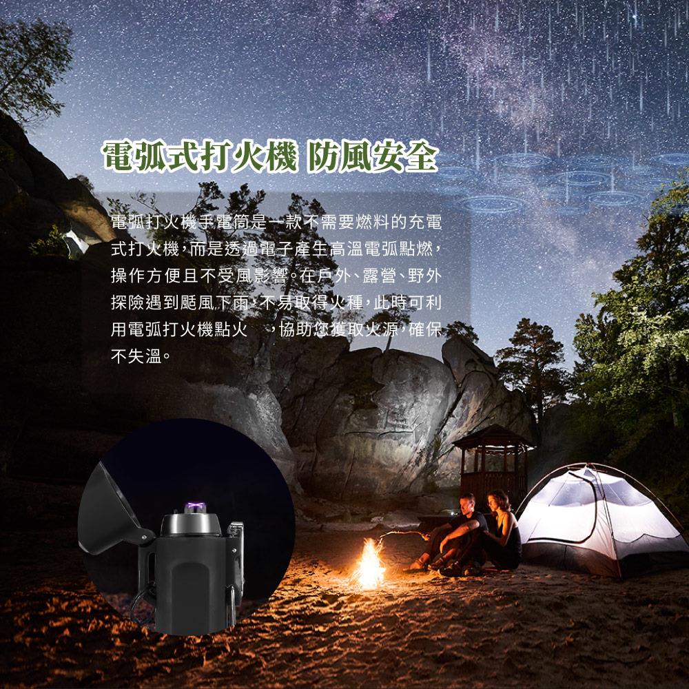 三合一多功能手電筒(USB充電/雙電弧打火機/指南針定位/LED緊急照明燈)