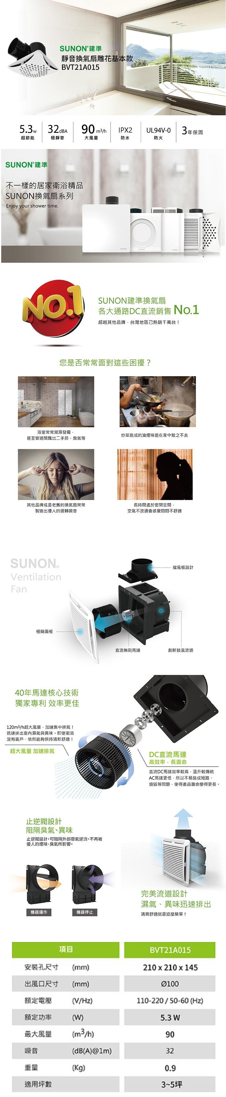 SUNON建準 DC雕花變頻換氣扇(BVT21A015)