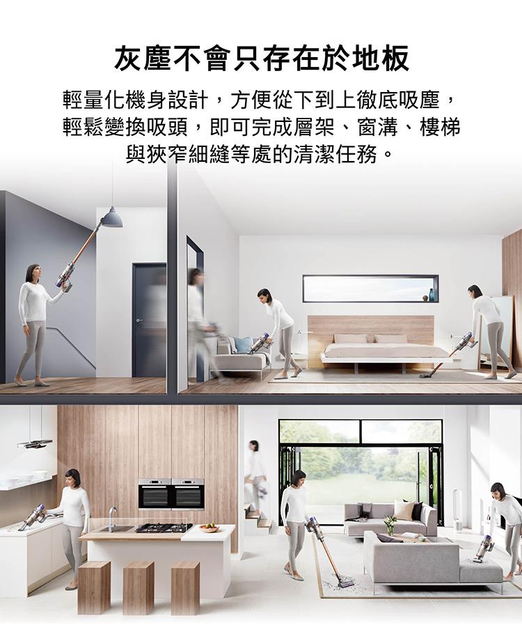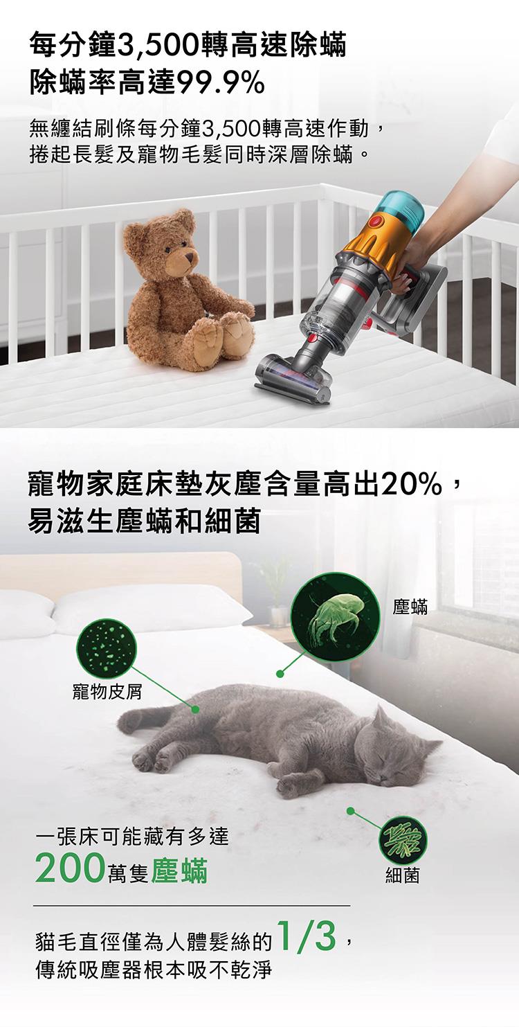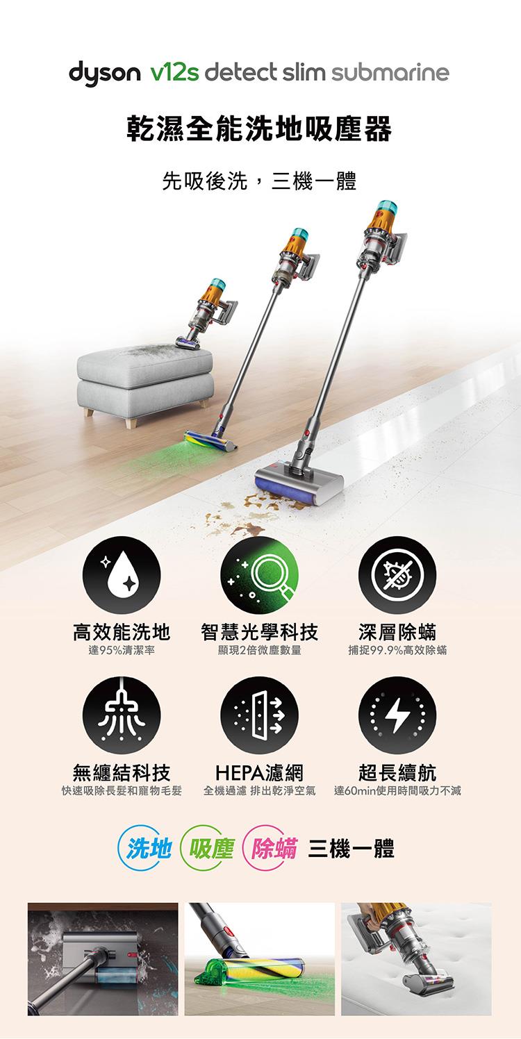 乾濕全能:三機一體,囊括dyson吸塵科技+ 洗地科技 + 除蟎科技
