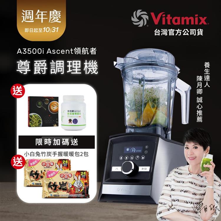 【送穀豆蛋白罐裝】美國Vitamix超跑級全食物調理機Ascent領航者A3500i-尊爵髮絲鋼-台灣公司貨-陳月卿推薦