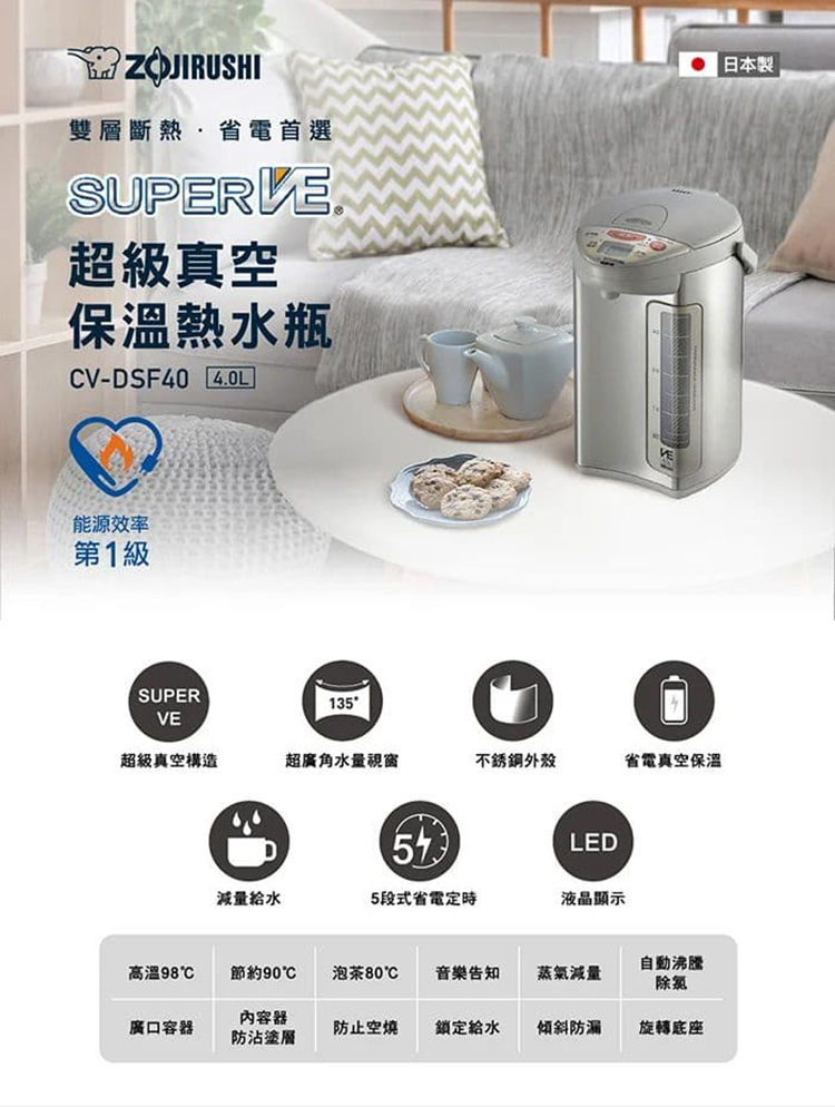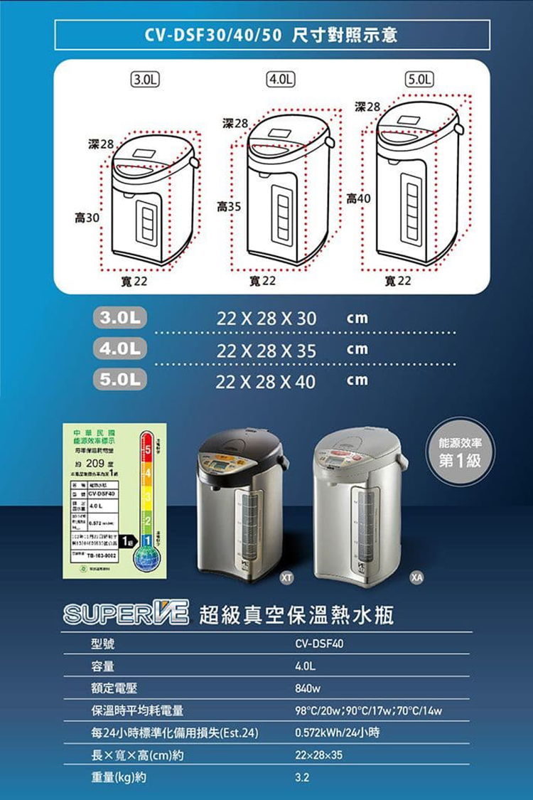 【ZOJIRUSHI 象印】4公升SUPER VE超級真空保溫熱水瓶(CV-DSF40)