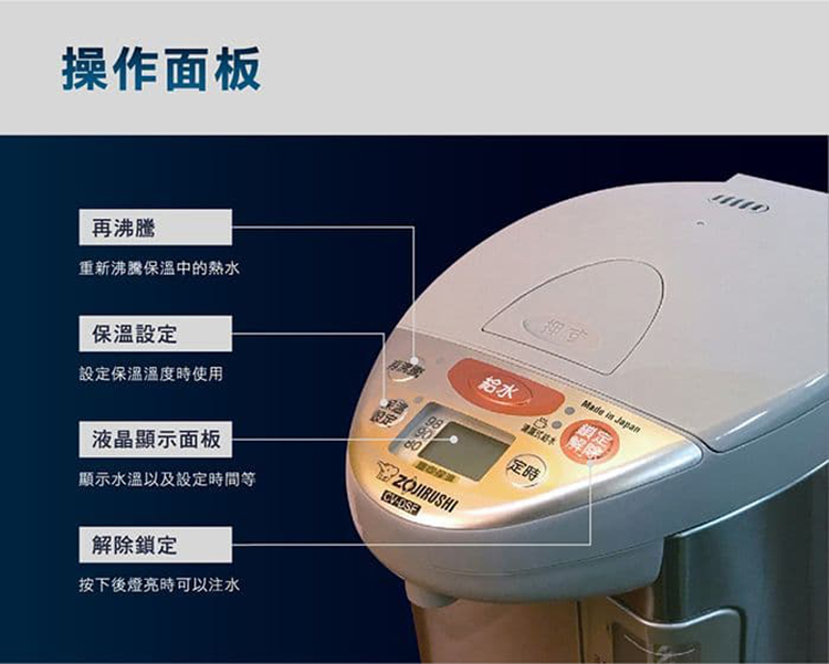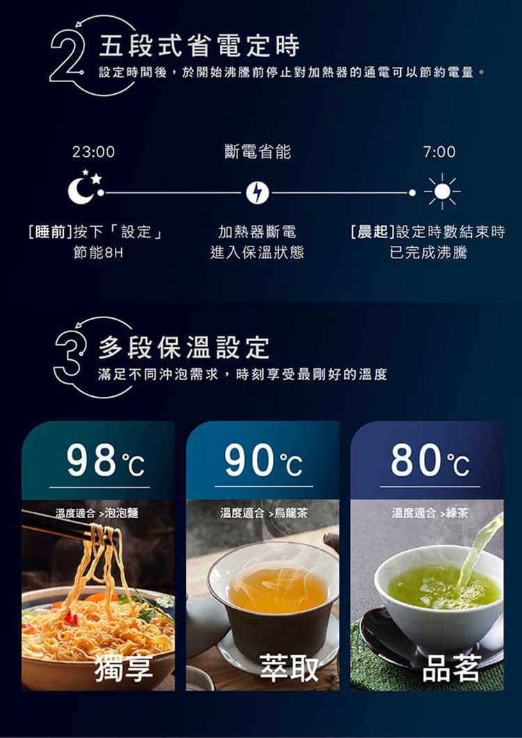 80℃、90℃、98℃、真空保溫,4段式溫度設定
