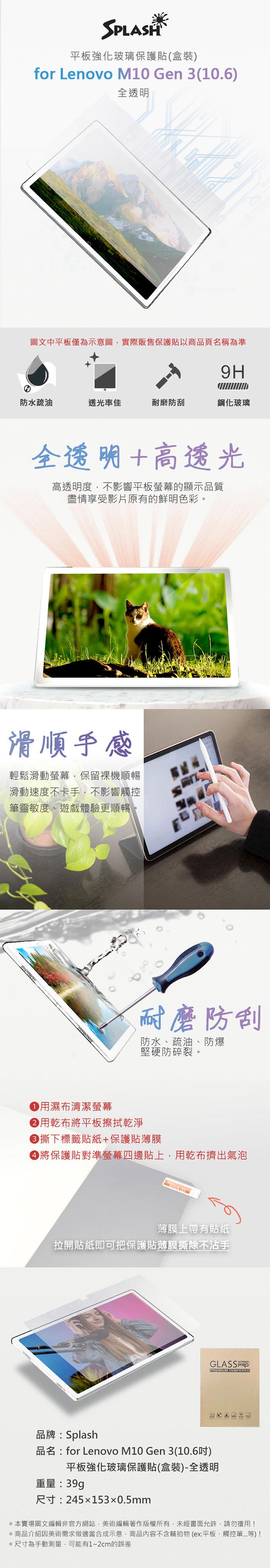 Splash for Lenovo M10 Gen 3(10.6吋)平板強化玻璃保護貼(盒裝)-全透明