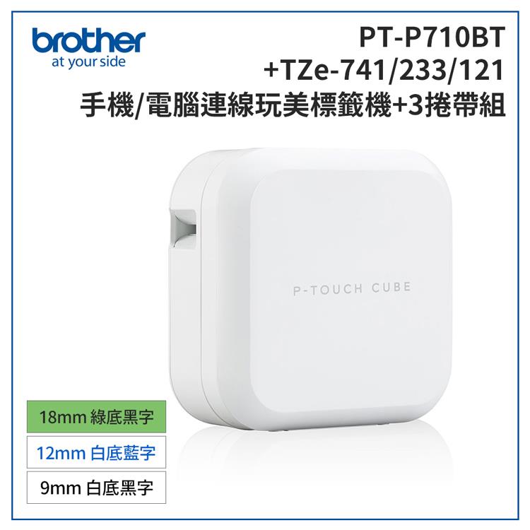 Brother PT-P710BT 智慧型手機/電腦專用標籤機+TZe-741+233+121標籤帶超值組