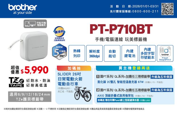 ★請注意:標籤機+標籤帶購買金額若低於贈品最低登錄金額(詳見官網),恕不再適用原廠上網登錄送相關活動。