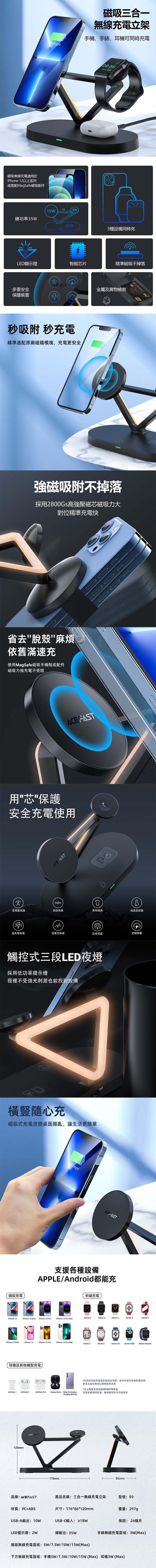 三合一無線充電,手機、手錶、耳機可同時充電商品介紹