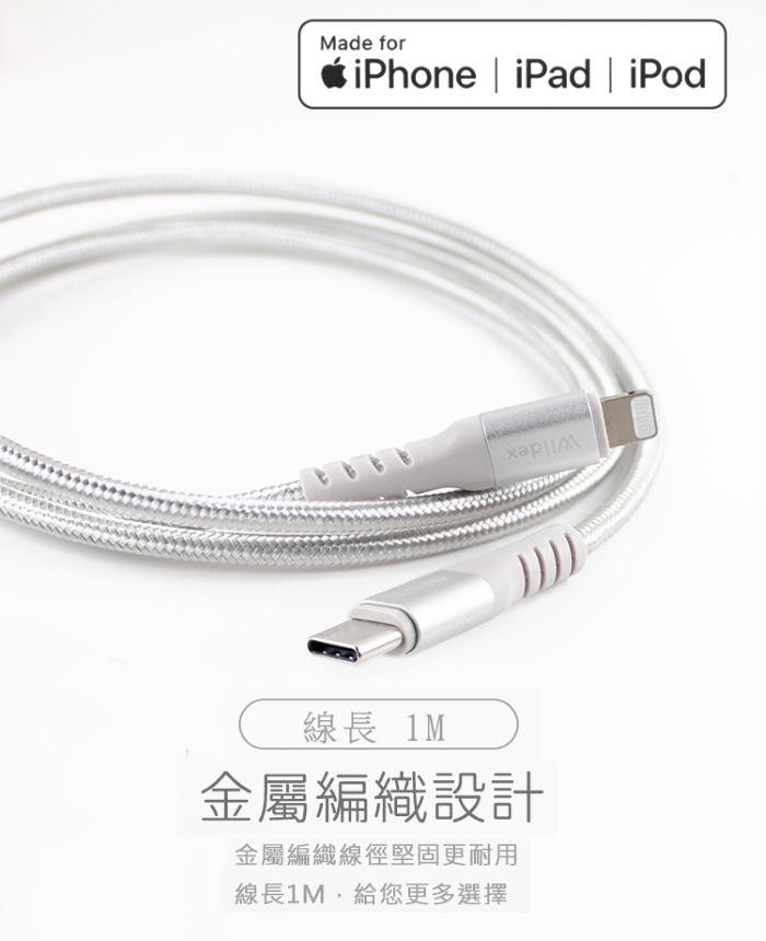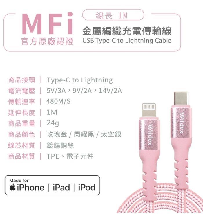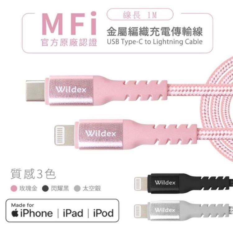 Wildex MFI蘋果認證編織線 TYPE C to Lightning-100cm WDFMI-1M