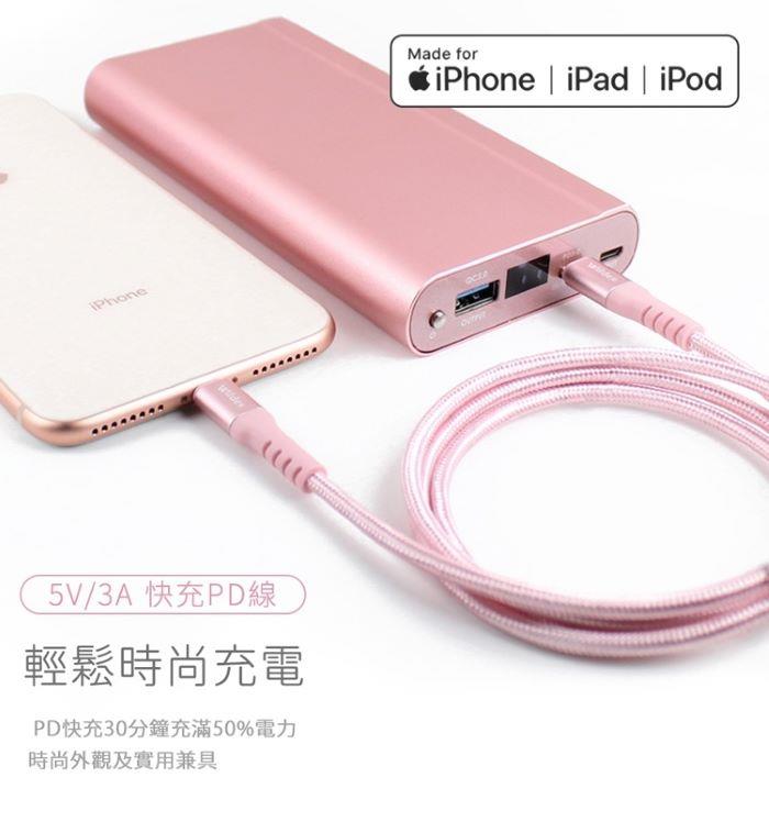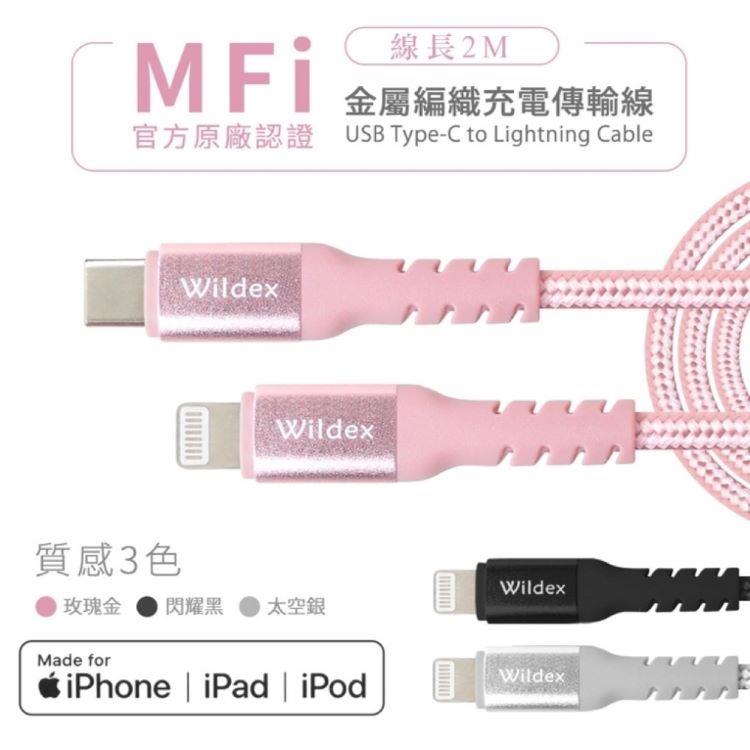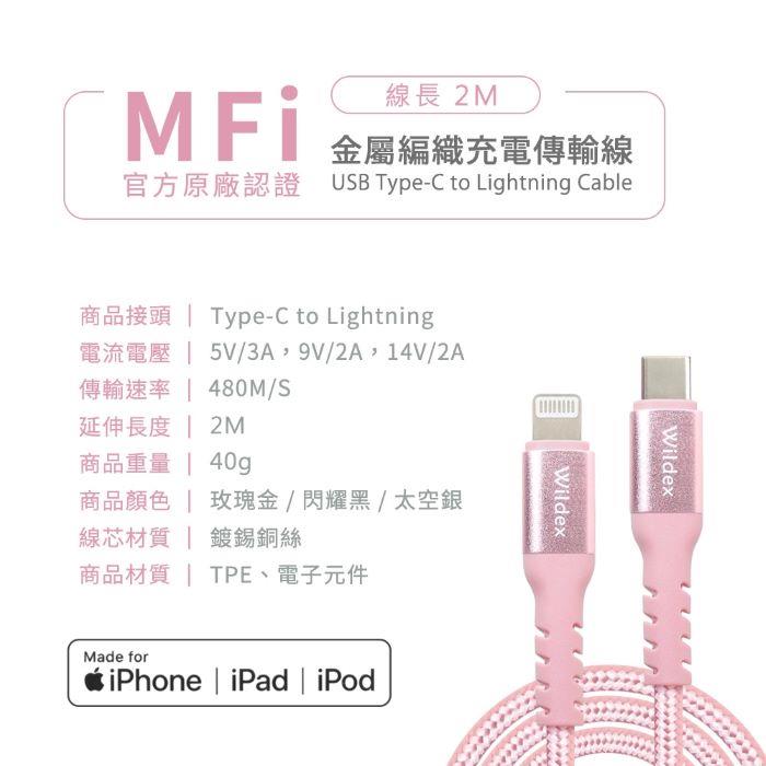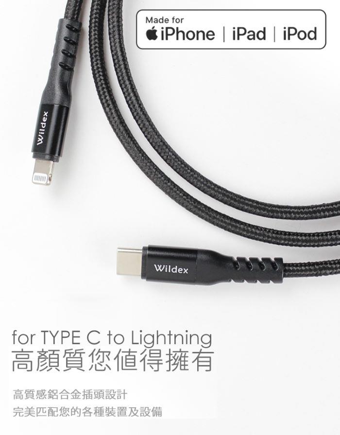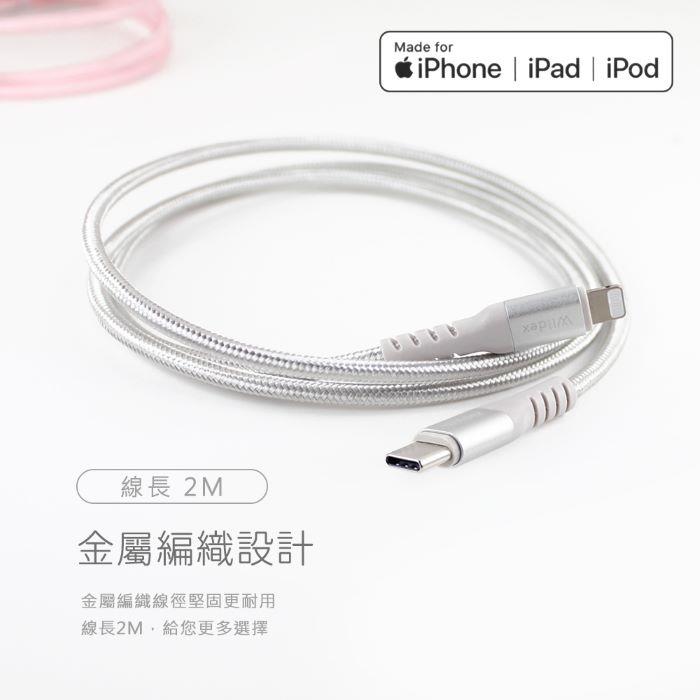 Wildex MFI蘋果認證編織線 TYPE C to Lightning-200cm WDFMI-2M