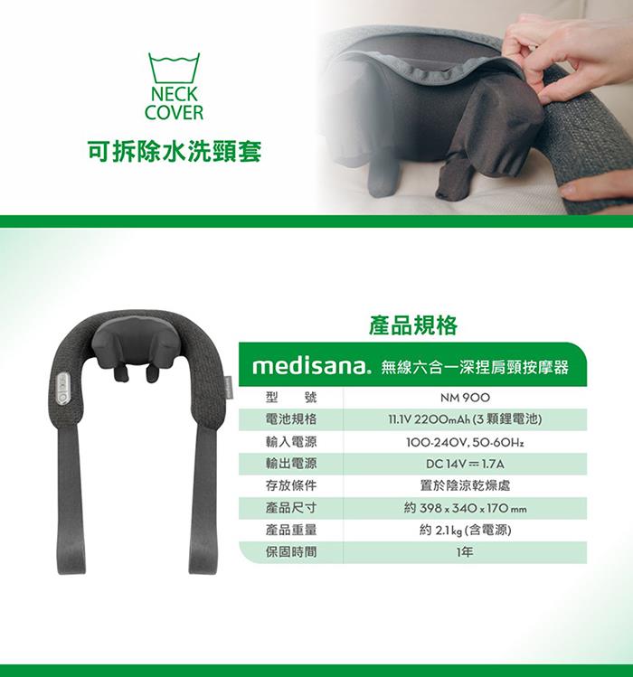 德國 medisana 無線六合一深捏肩頸按摩器 NM 900