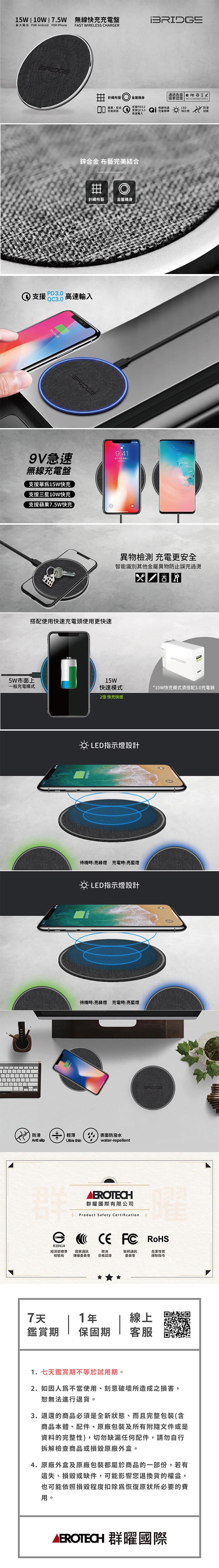 iBRIDGE 15W+蘋果7.5W 鋅合金急速無線充電板