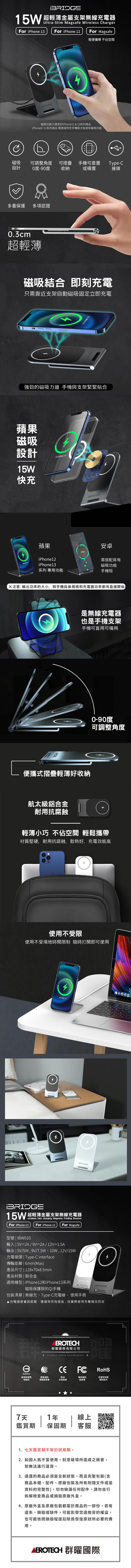 iBRIDGE 15W 超輕薄金屬支架無線充電器