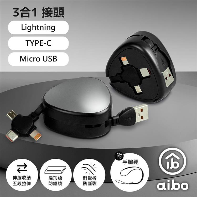 .商品名稱:aibo 三角伸縮隱藏 三合一快充線(1.1M)