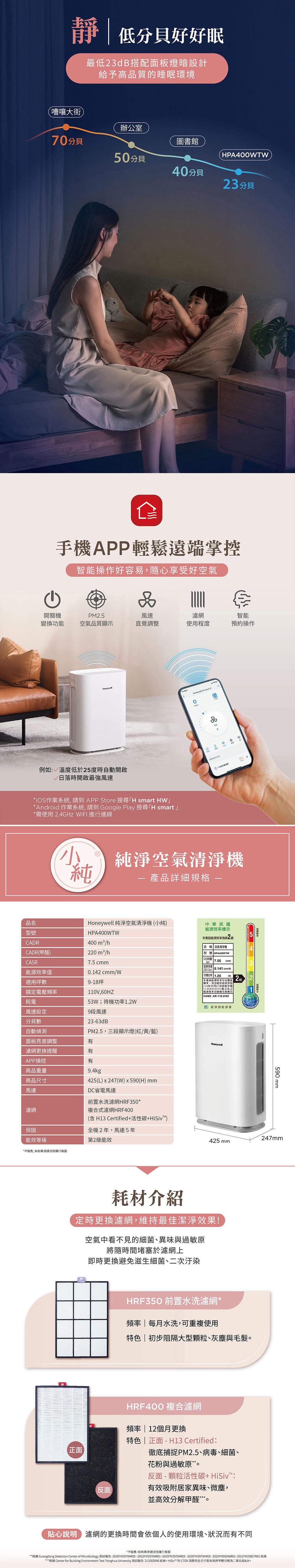【一年份濾網組】美國Honeywell 純淨空氣清淨機 HPA400WTW (適用9-18坪|小純)