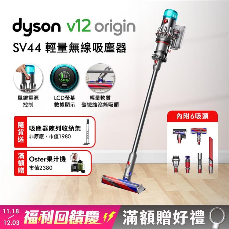 Dyson戴森 V12 Origin SV44 輕量無線吸塵器 銀灰【送副廠架+Oster果汁機】
