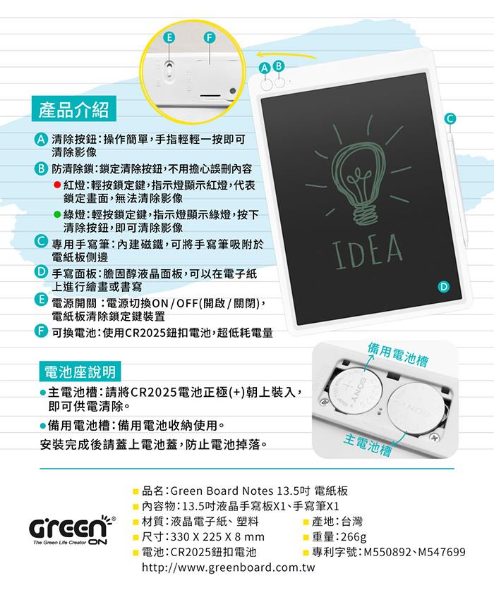 Green Board Notes 13.5吋電紙板 大尺寸清除鎖定版