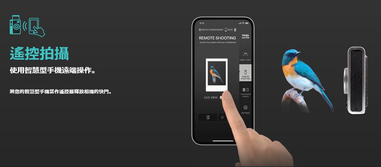 智慧型手機應用程式相關功能:影像列印、遙控拍攝、傳輸列印影像、韌體升級