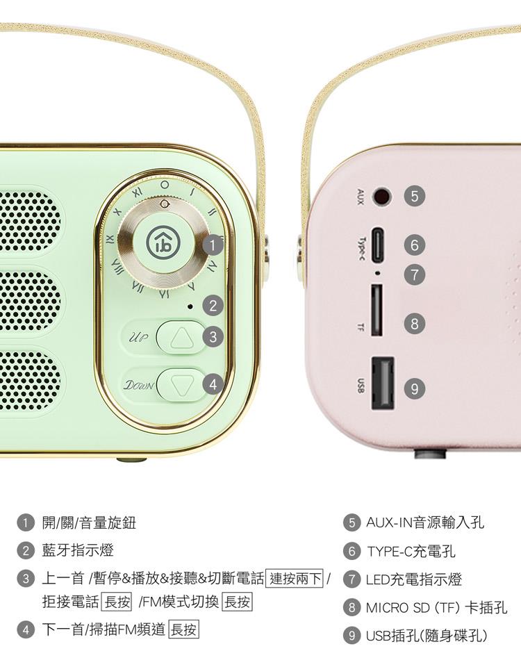 aibo 藍牙V5.0 手提復古藍牙喇叭(記憶卡/USB隨身碟/AUX-IN) ★支援TWS無線串聯★