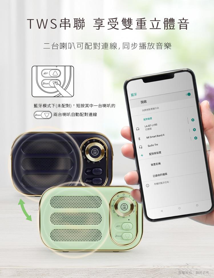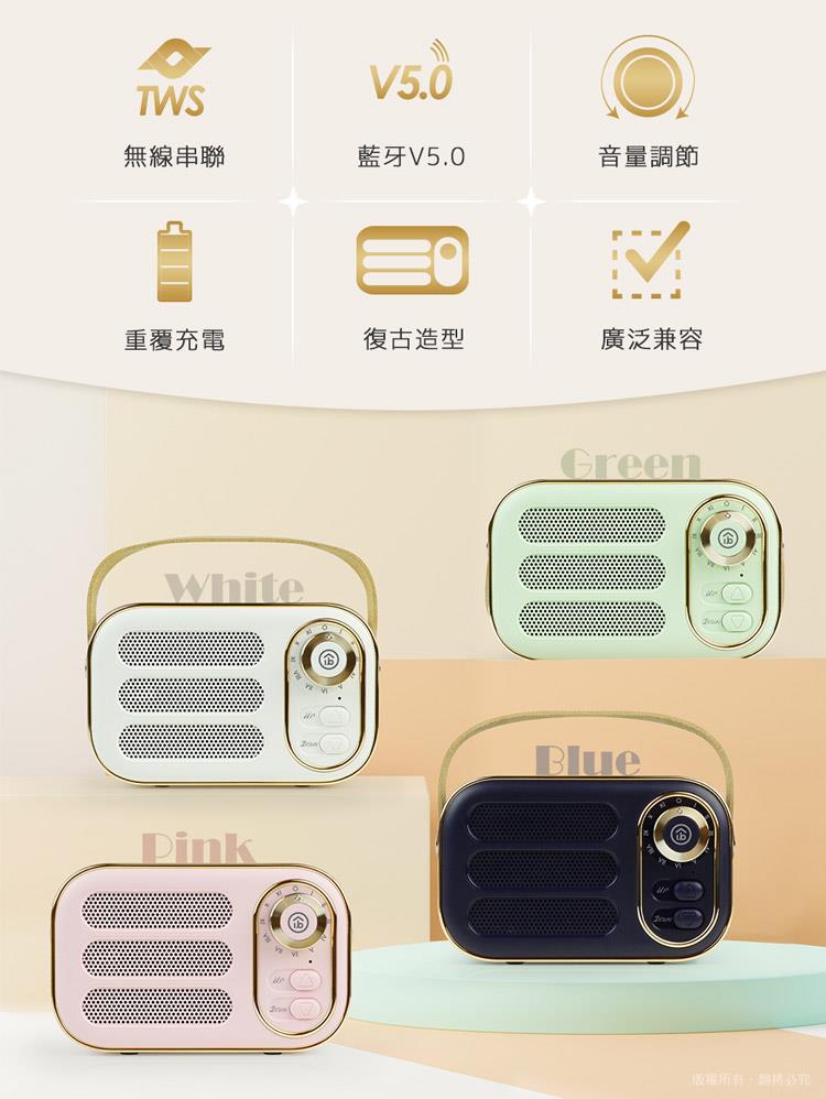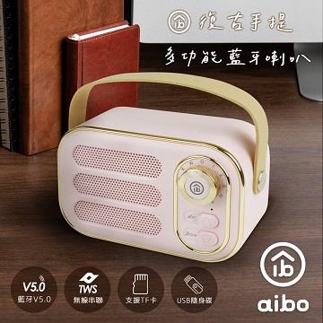 aibo 藍牙V5.0 手提復古藍牙喇叭(記憶卡/USB隨身碟/AUX-IN) ★支援TWS無線串聯★