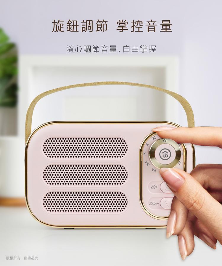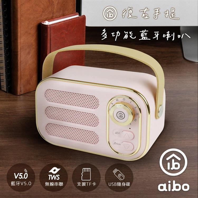 aibo 藍牙V5.0 手提復古藍牙喇叭(記憶卡/USB隨身碟/AUX-IN)-粉紅