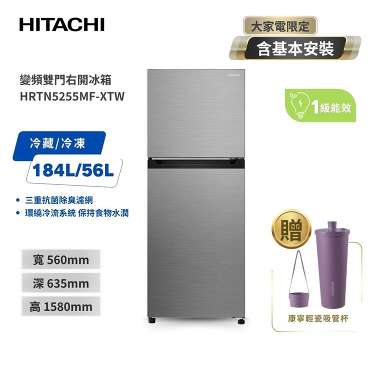 【日立 HITACHI】 1級變頻 240L 2門電冰箱 HRTN5255MF-XTW