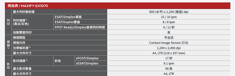 ●列印速度(A4, ISO):最高 15 / 10 ipm (黑白/彩色)