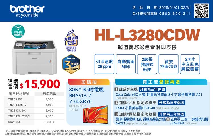Brother HL-L3280CDW 超值商務彩色雷射印表機