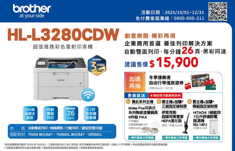 Brother HL-L3280CDW 超值商務彩色雷射印表機