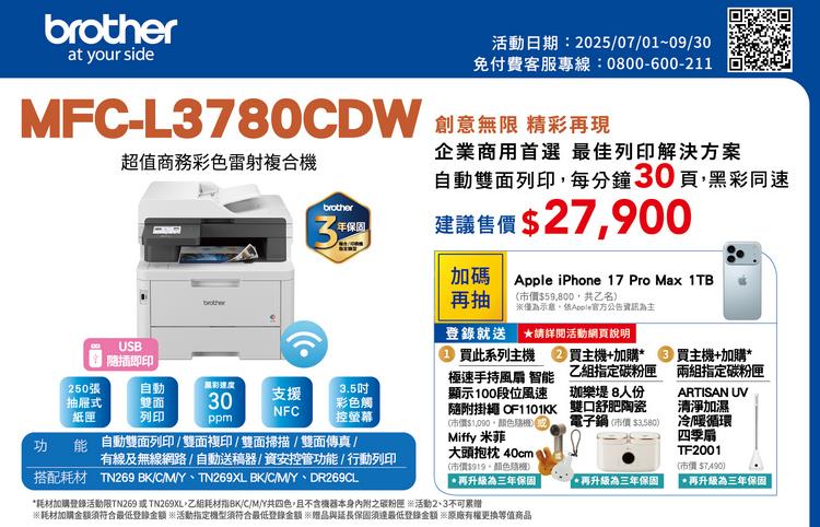 Brother MFC-L3780CDW 超值商務高速彩色雷射複合機