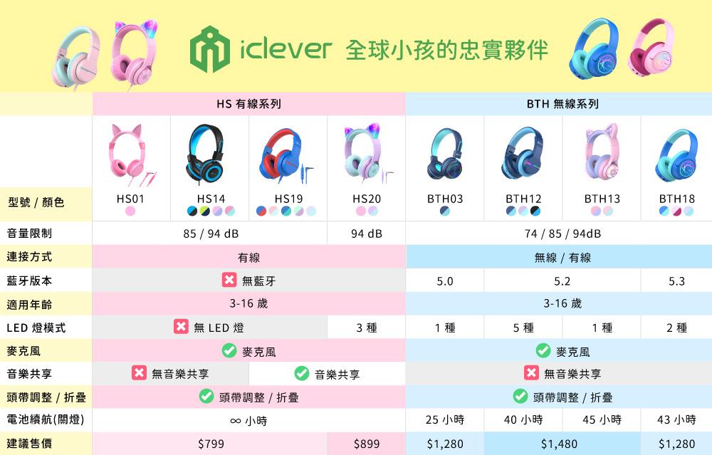 - 產品名稱:iClever BTH13 炫光無線兒童耳機