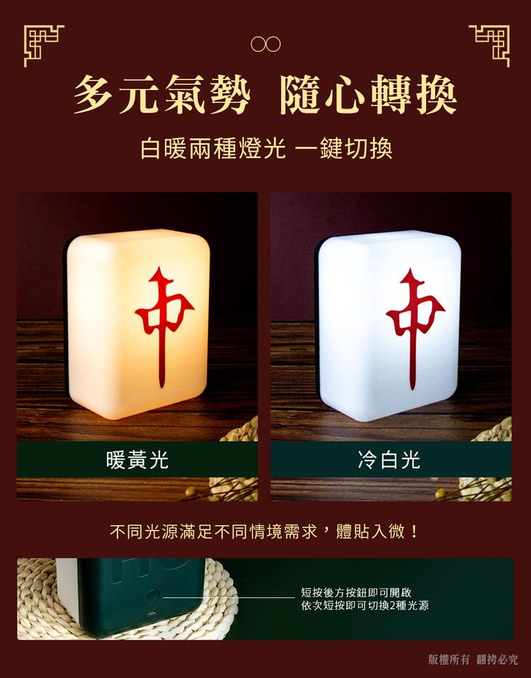 小夜燈融入擬真麻將設計,結合小夜燈功能,