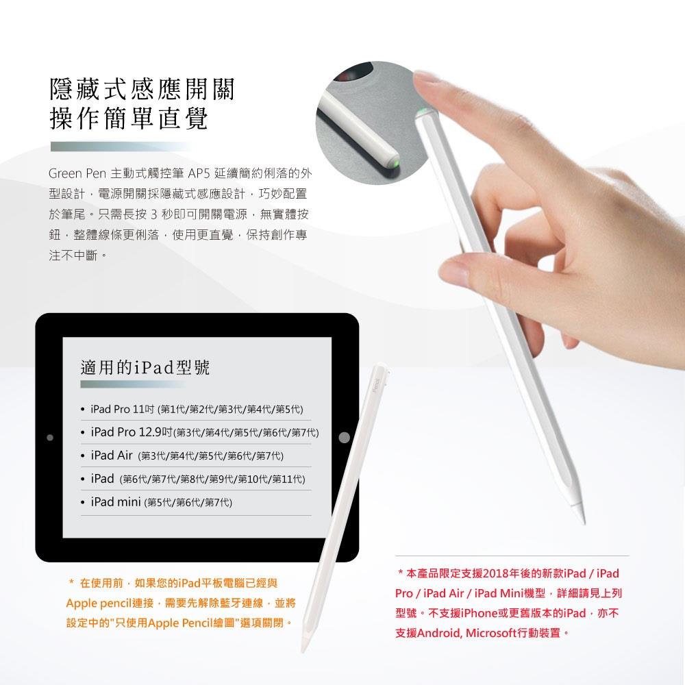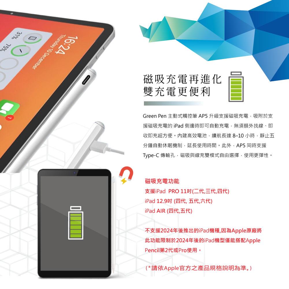 - 磁吸功能:筆身支援磁吸收納。僅支援2020-2023iPad充電,不支援2024-2025年的iPad(*請依Apple官方之產品規格說明為準。)