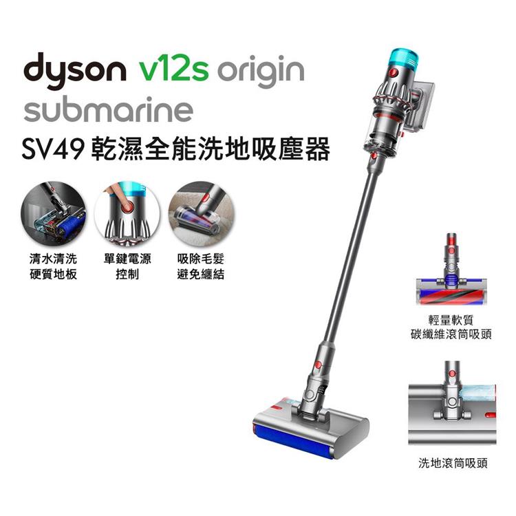 【贈副廠架+洗地滾筒+果汁機】Dyson V12s Origin 乾濕全能洗地吸塵器 銀灰色
