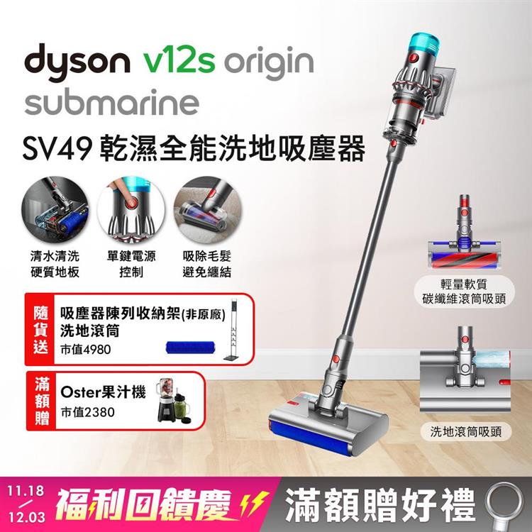 Dyson V12s Origin 乾濕全能洗地吸塵器 銀灰色【送收納架+滾筒+Oster果汁機】